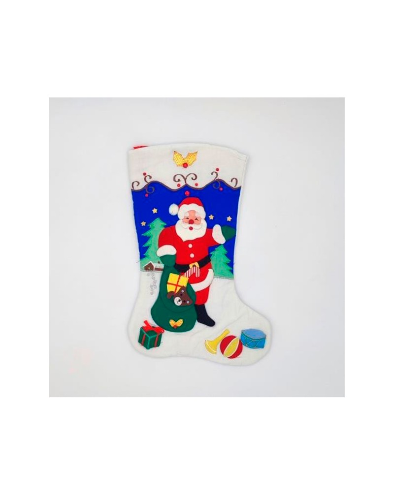 Fabricado con materiales suaves y resistentes, su tamaño generoso permite guardar pequeños regalos, dulces, notas sorpresa o detalles especiales para los más pequeños. Sus colores típicos de la temporada —rojo, blanco y verde— y sus motivos navideños aportan calidez y encanto, convirtiéndolo en un accesorio ideal para crear momentos mágicos en familia.