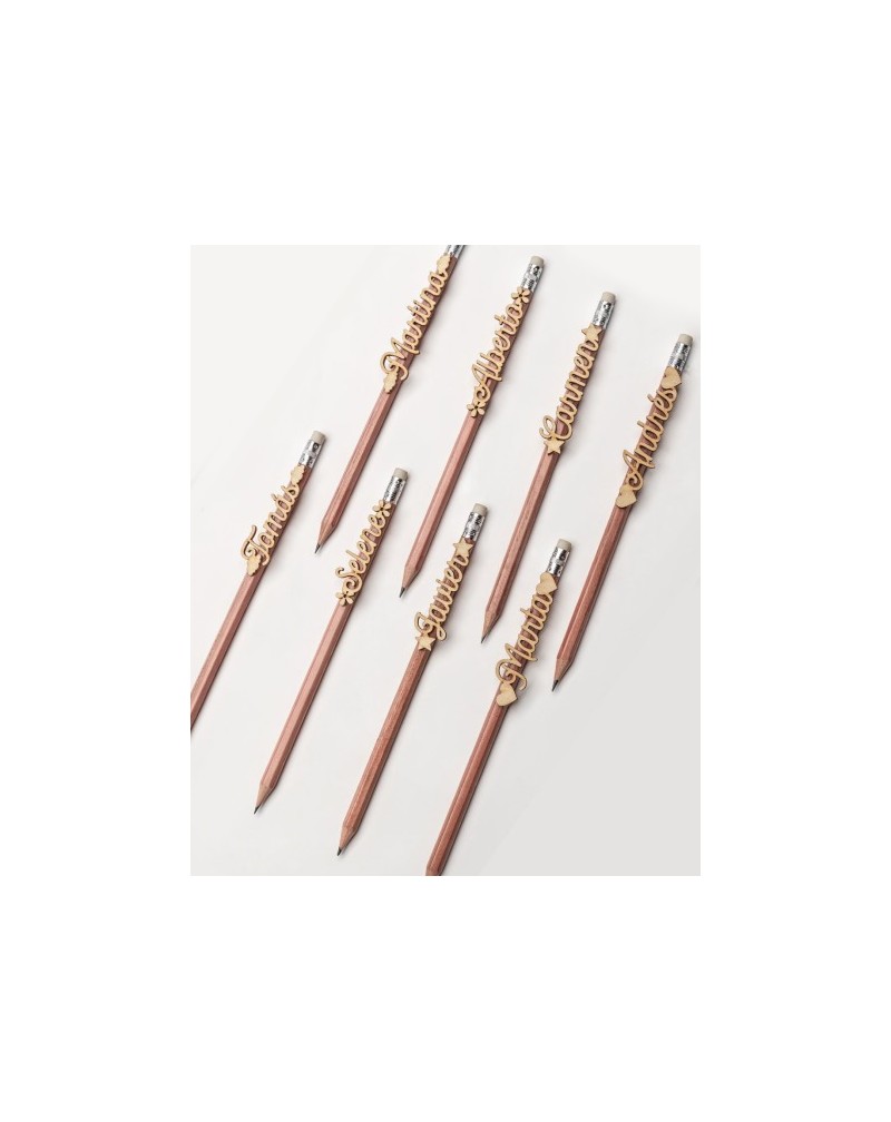 Fabricados en madera natural, cada lápiz puede llevar el nombre del invitado, convirtiéndose en un recuerdo único de ese día tan especial.
